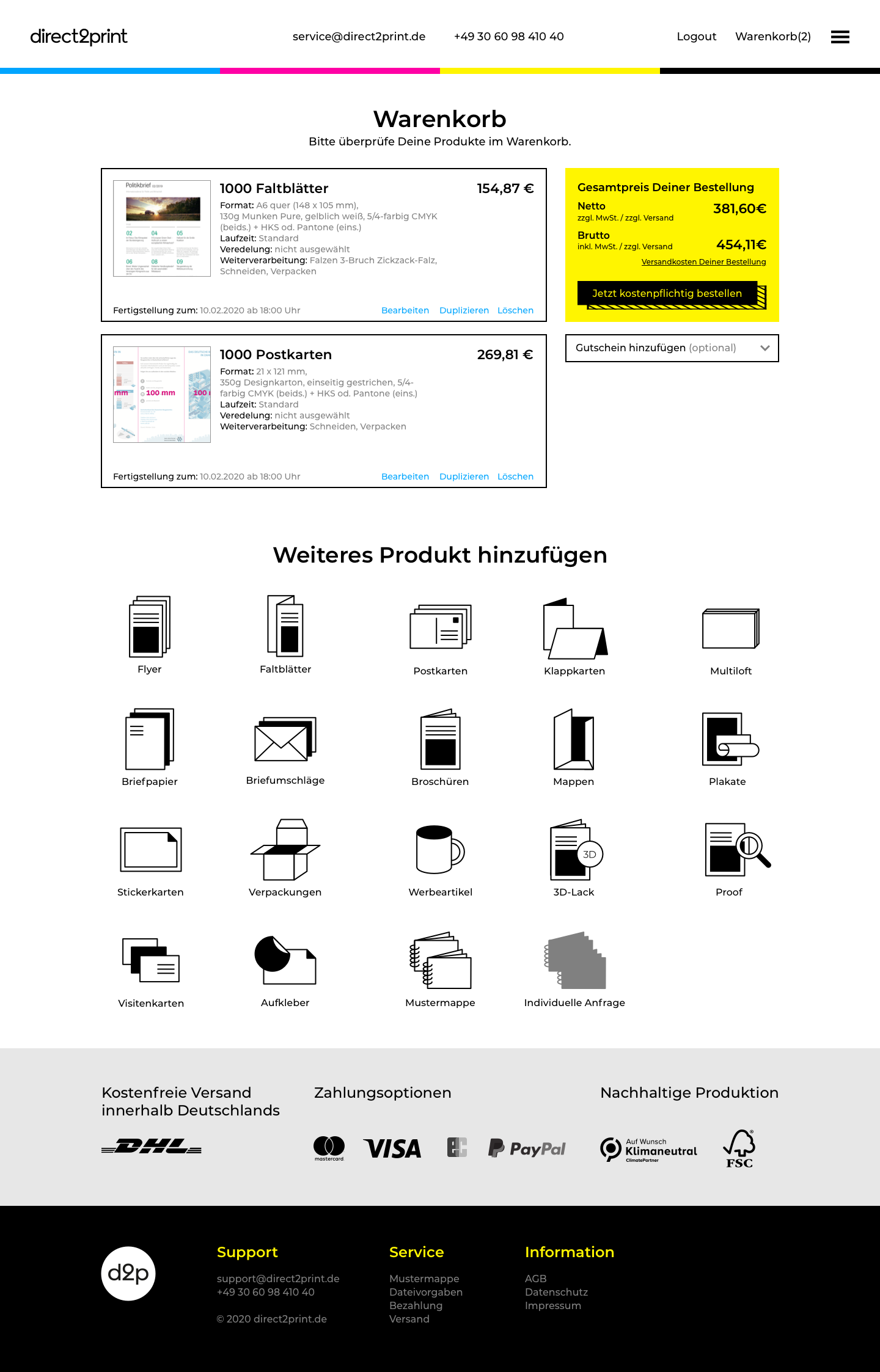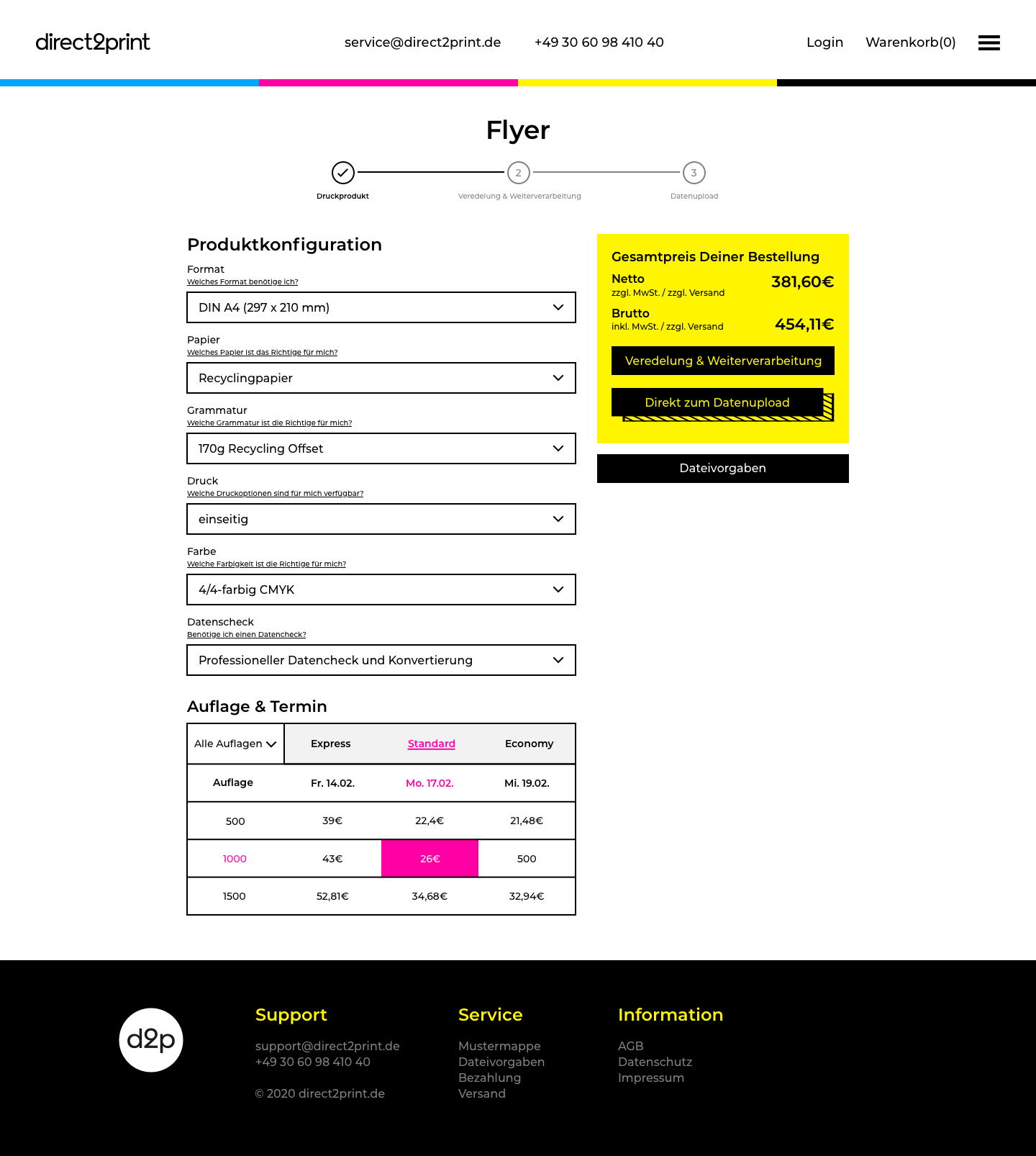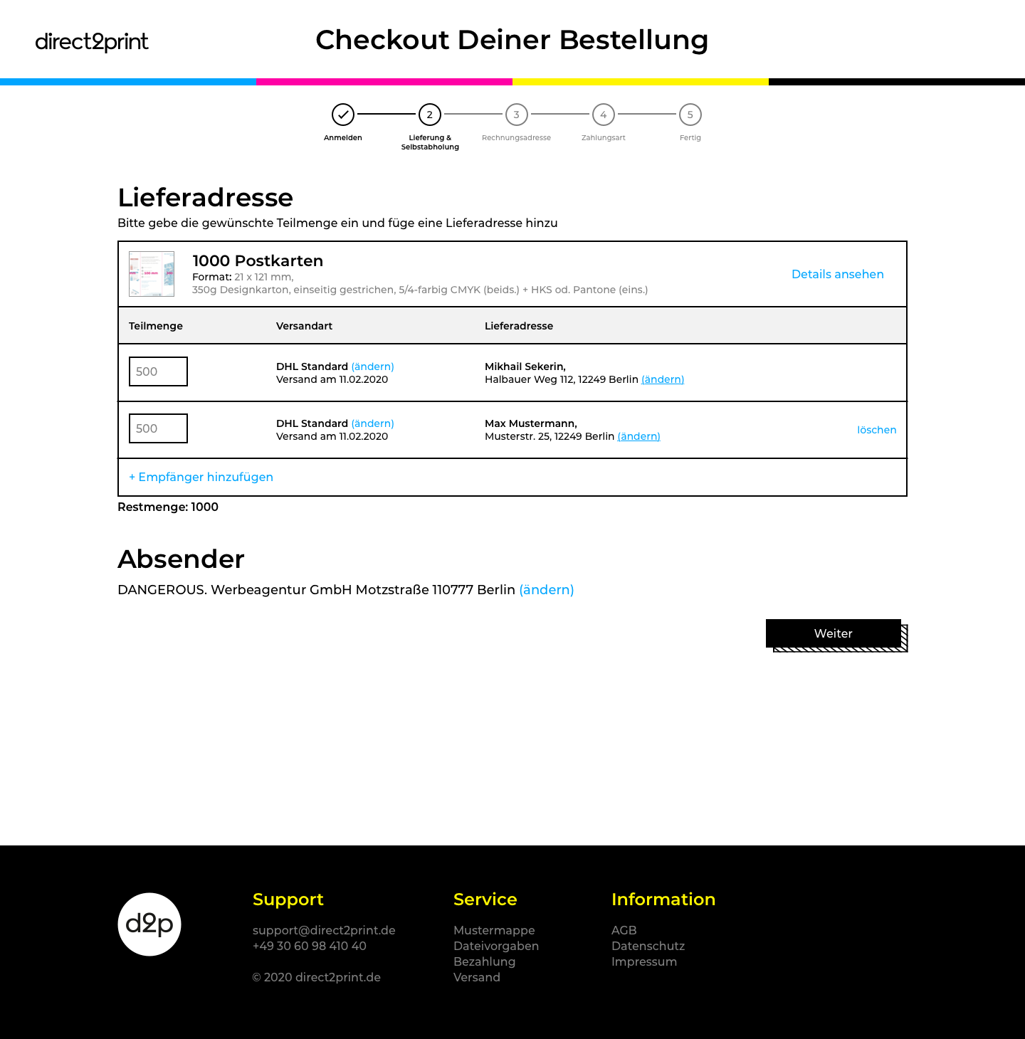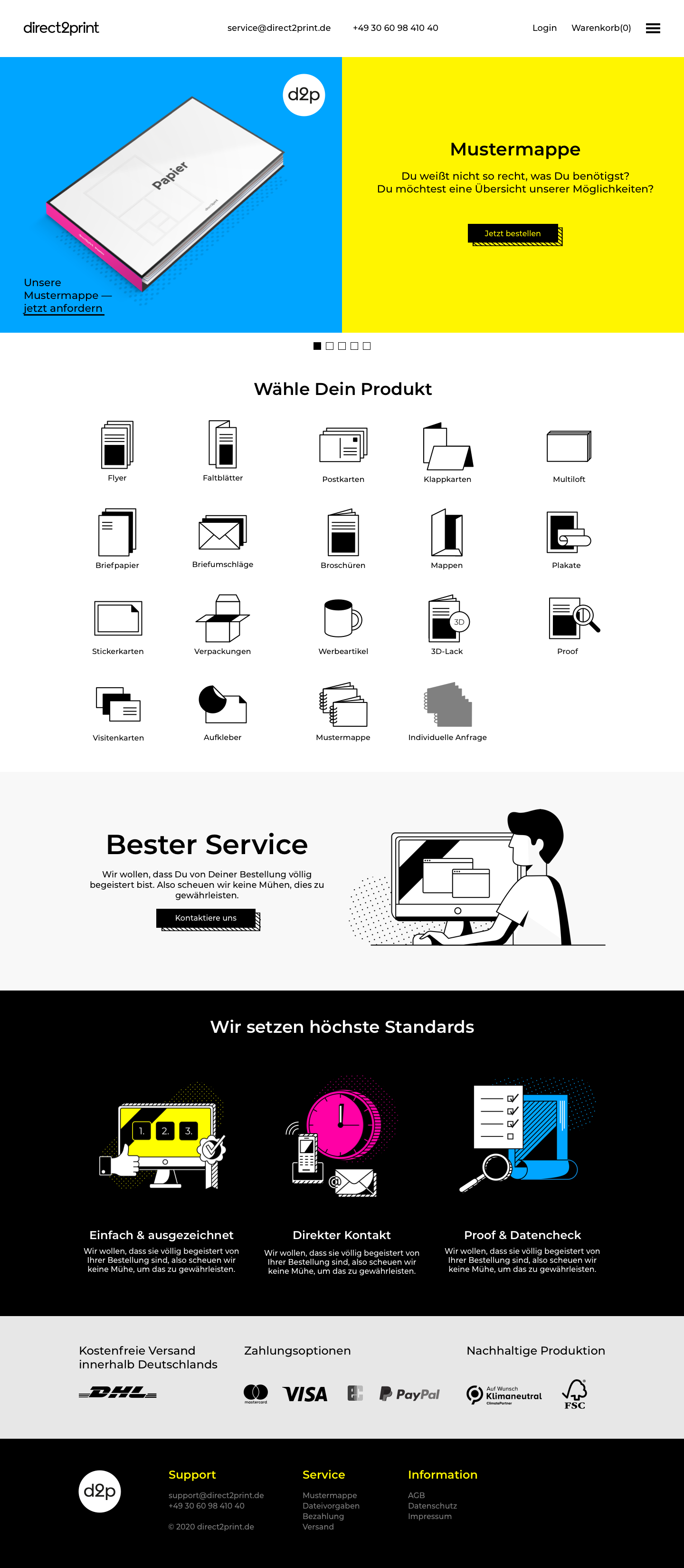 One of the web design projects I worked on at Dangerous was the redesign of the website for the digital printing company direct2print. I got the first mockup of the landing page from the art director and had to redesign all the necessary subpages based on it and improve the order and shipping cart funnels,